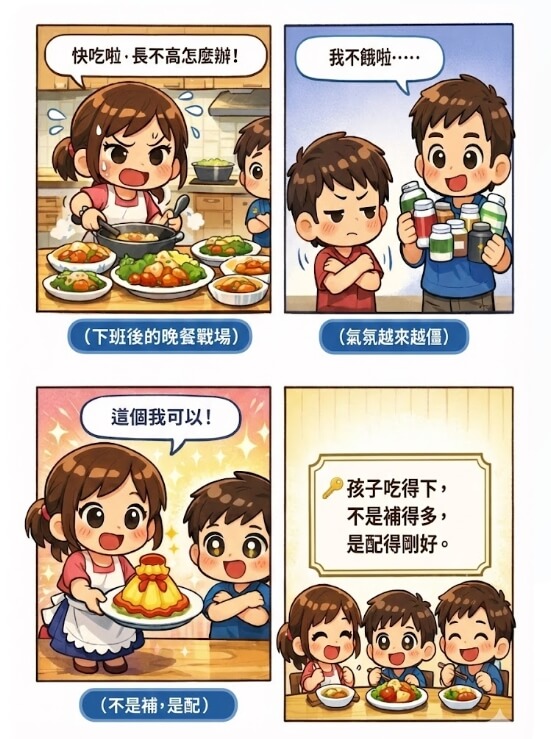 | 出發點 | 擔心長不高、怕營養不夠 | 回應成長期實際需求 | 建立長期吃飯關係 |