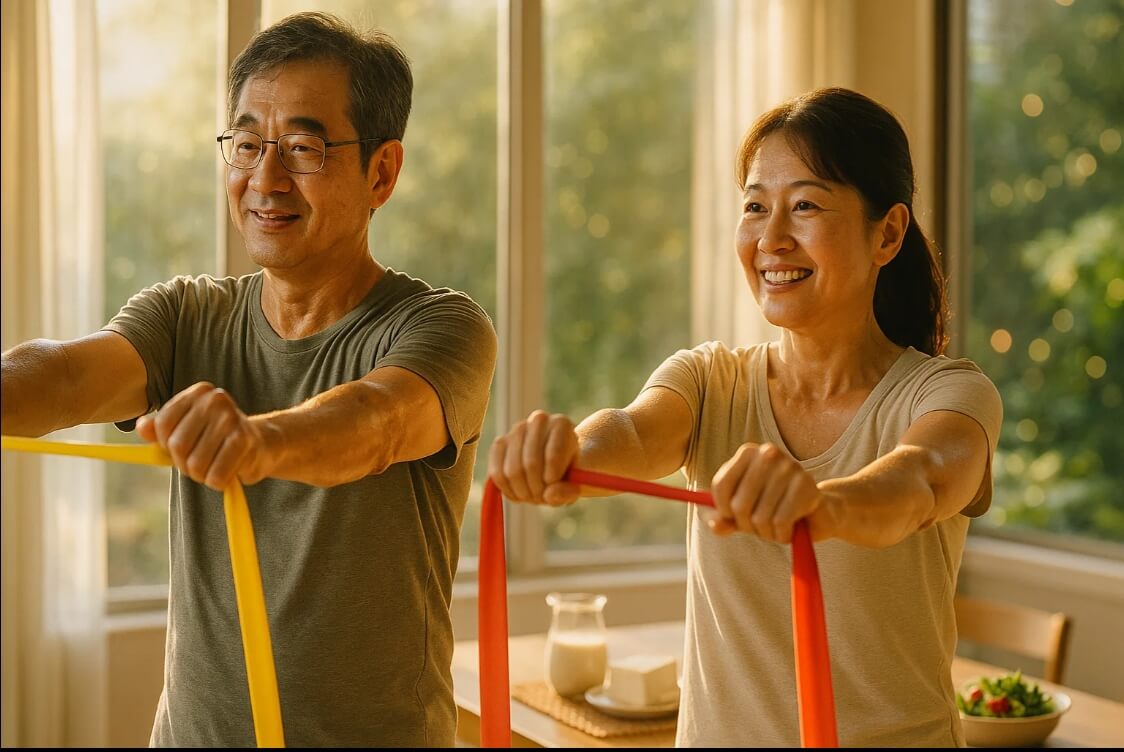 運動則是讓骨頭「記得力量」的關鍵。建議每週進行三次抗阻與平衡訓練,例如深蹲、爬樓梯、彈力帶訓練。這些動作能刺激骨細胞重建,就像給骨頭上一堂「強韌再教育課」。