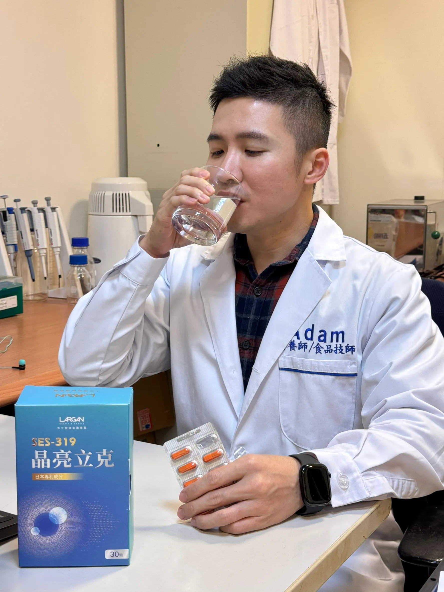 在安全性方面,對於需要長期補充的營養品來說,這是我同時身為營養師與食品技師特別重視的一環。晶亮立克通過 SGS 檢驗,重金屬、西藥 365 項未檢出,此外,我也主動向廠商確認全成分標示與各項原料比例,(金盞花萃取物含游離型葉黃素及玉米黃素18%、SES319 因子10%、愛媛蜜柑粉8%….),不會寫了一大堆,結果有效成分卻都只有加一些,無效的填充成分吃飽飽,另外該產品原料亦具有日本多項專利。