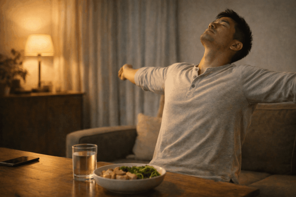 固定入睡時間、睡前減少強刺激(工作收尾、重口味飲食、滑手機)。你不用早睡到完美,但至少要「固定」。
