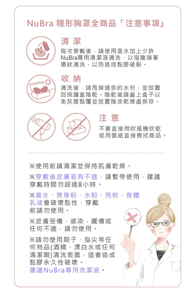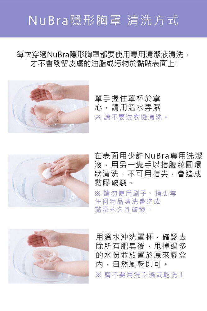 ● 有效清潔殘留膠質與皮脂,延長 NuBra 壽命